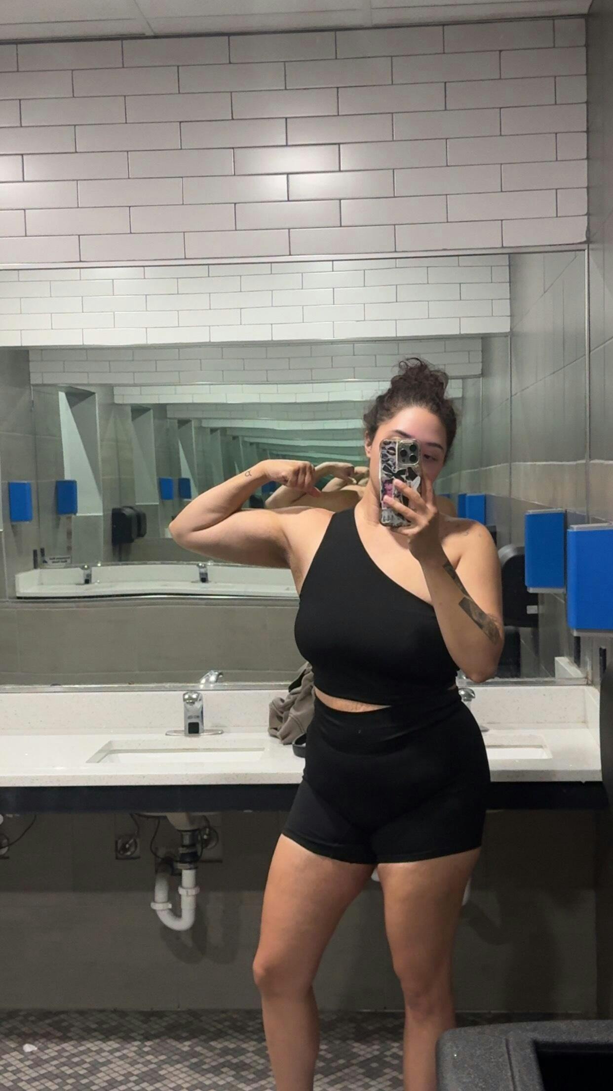 I love this top so muchhhh!!! Such a cute color and stays up my whole workout! definitely a purchase if your looking for something cute practical and flattering!